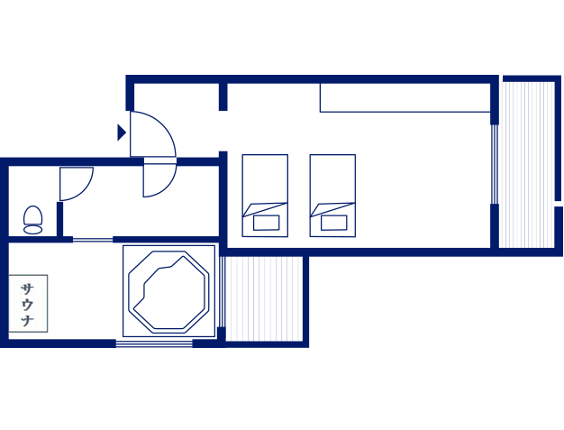 | 設備・備品 | シャワートイレ、個室サウナ、空気清浄機、コーヒーメーカー、湯沸かしポット、大型液晶テレビ、 DVDプレイヤー、ヘアドライヤー、アメニティ(THANNシャワージェル、シャンプー、 コンディショナー、シャワーボール、歯ブラシセット、ルームスリッパ、 コーム、コットン/綿棒、ボディタオル、、ミネラルウォーター、ハンドソープ、) |